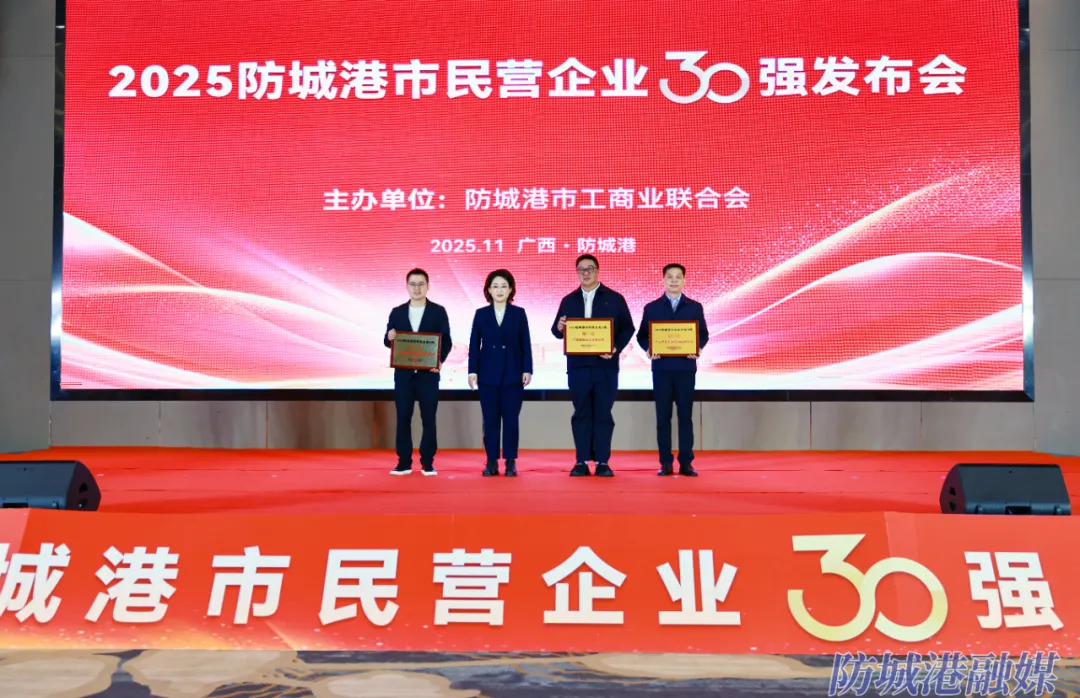 11月18日,2025防城港市民营企业30强发布会举行。市委书记黄江出席发布会并为上榜民营企业颁发牌匾。